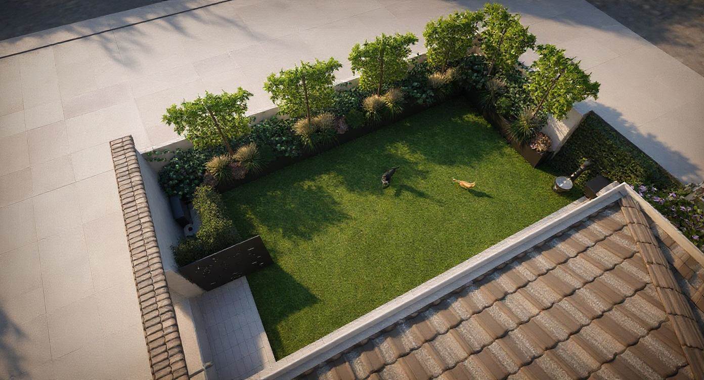 Il cortile esterno è di circa 100 mq ed è perfetto per creare un angolo riservato e posti auto dove è stata già posizionata la wall box per ricarica autoveicoli elettrici.